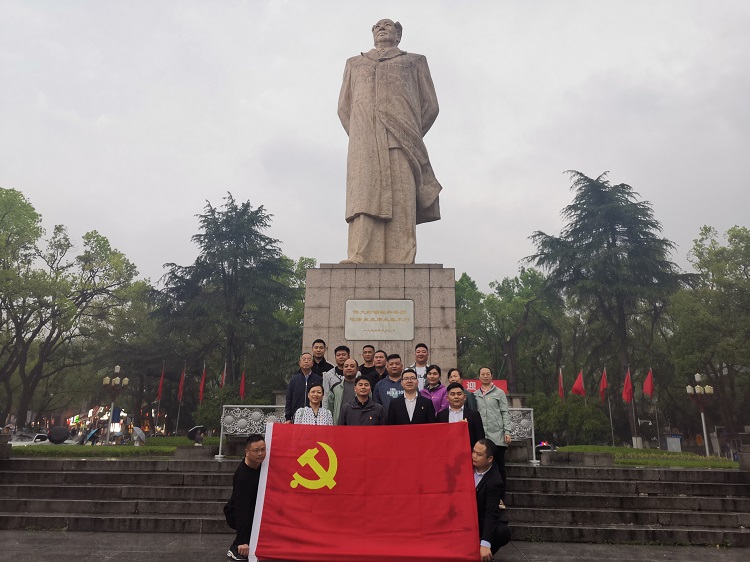 最后,全体党员沿着岳麓山林间小路,来到了湖南大学东方红广场。每位党员自觉地站在广场高大雄伟的毛泽东主席雕像前,躹躬献礼并合影留念。