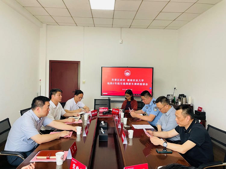 5月8日,芙蓉区政府谢孟副区长一行来校调研,为建设农科院农大地铁站至校区交通摆渡车进行沿线路程现场踏勘,区交通运输局、区交警大队分管负责人陪同。郑晓峰副校长出席座谈会,党政办、保卫工作部、人事处、离退休工作处、工会负责人参加了会议。