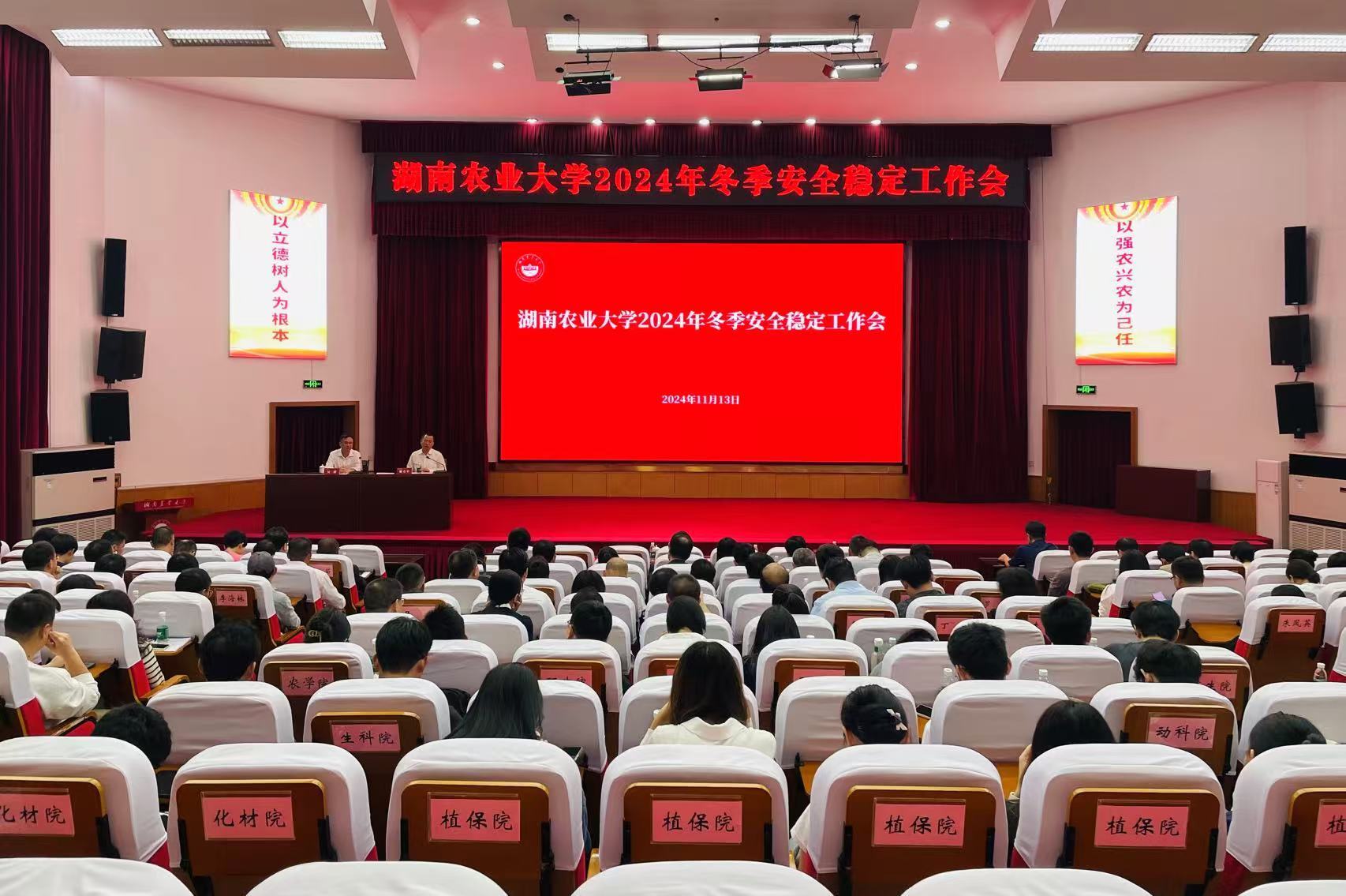 (本网讯 保卫工作部周鑫)11月13日下午,学校召开2024年冬季安全稳定工作会,副校长谢方平主持,副校长吴波及芙蓉区消防大队长周振华出席会议,学校相关职能部门负责人,各学院党委书记、分管学生工作和分管安全工作的院领导、学工办主任,各自然科学学院实验室负责人,保卫工作部、后勤保障中心各科室负责人,安保公司及物业公司管理团队参加会议。