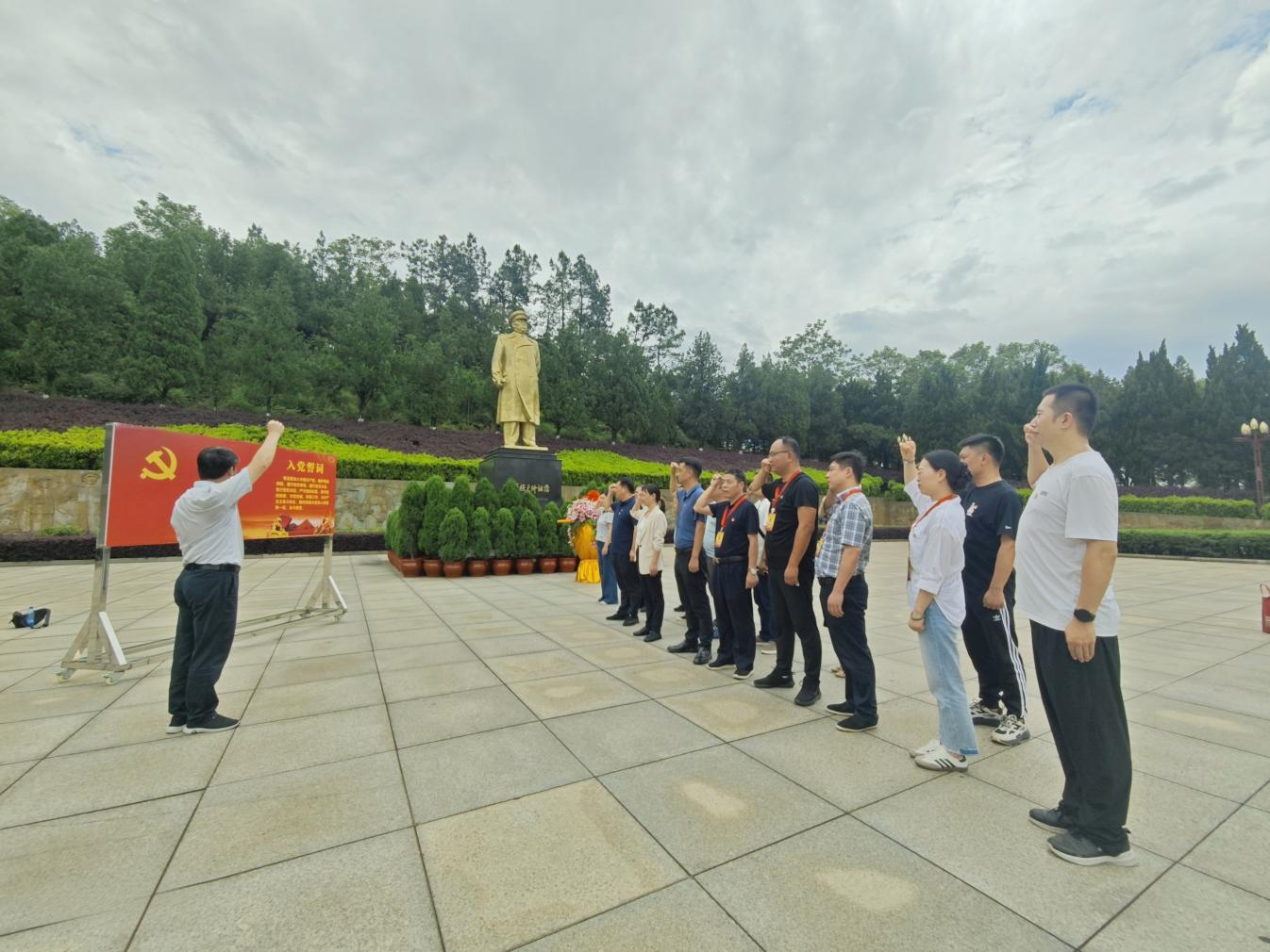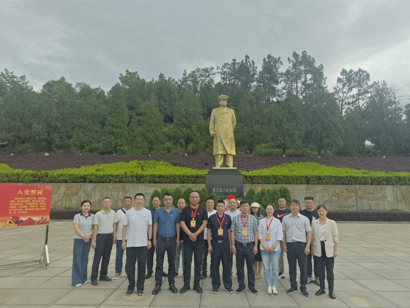 “我志愿加入中国共产党……”在庄严的党旗前,党支部书记胡建雄领誓,全体党员高举右拳重温入党誓词。20名党员分两列肃立,杨彩虹、喻波及4名模范岗党员位列前排,铿锵誓言在纪念馆内久久回荡。此次宣誓特别采用“情景式教育”模式,结合罗荣桓元帅“一生共产主义者”的革命事迹,引导党员在历史场景中感悟初心使命。
